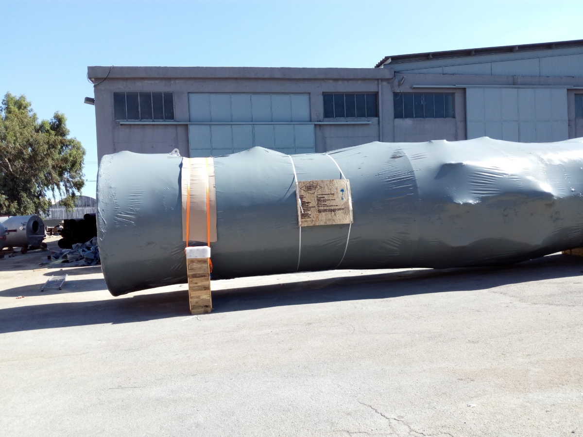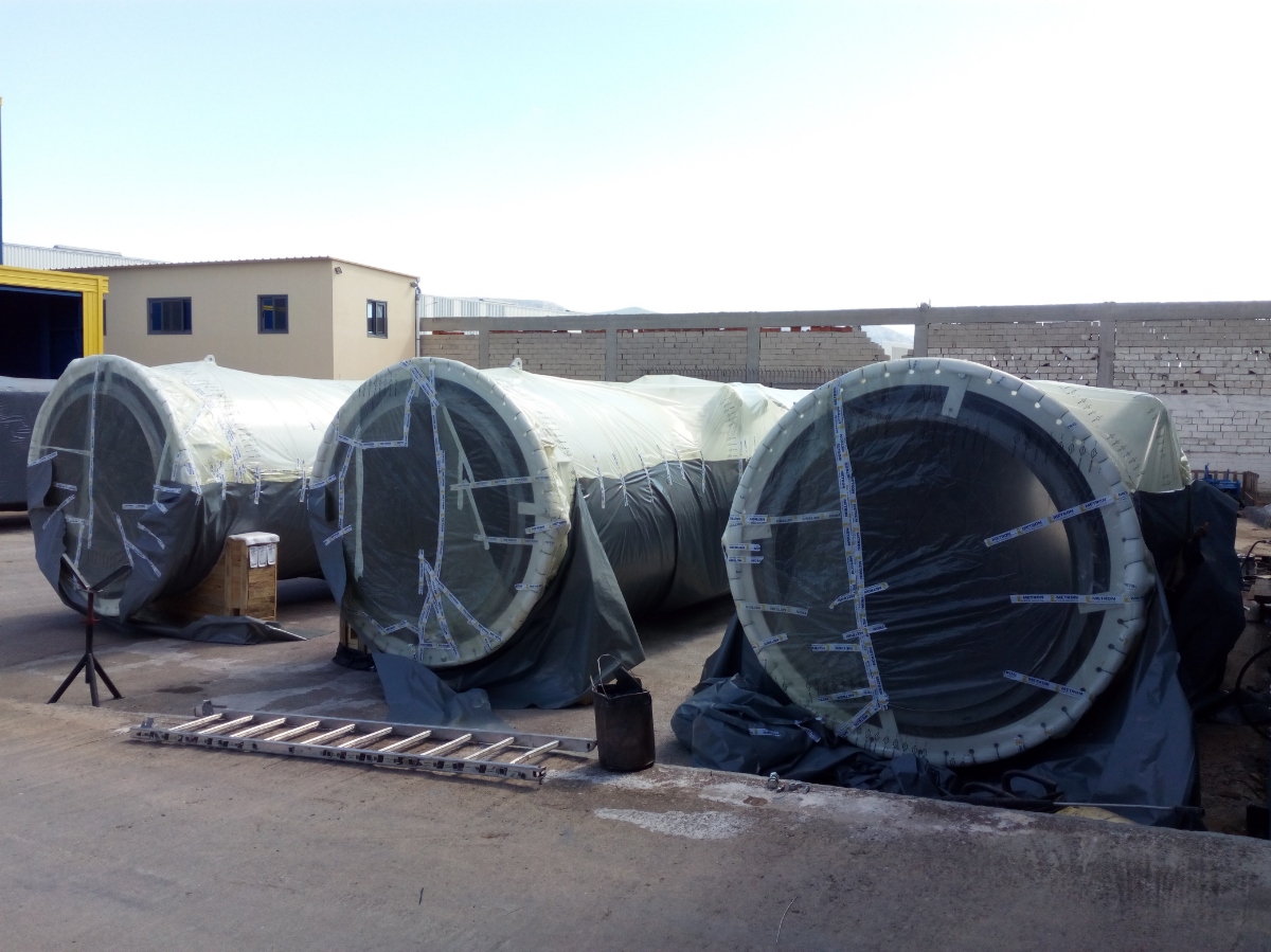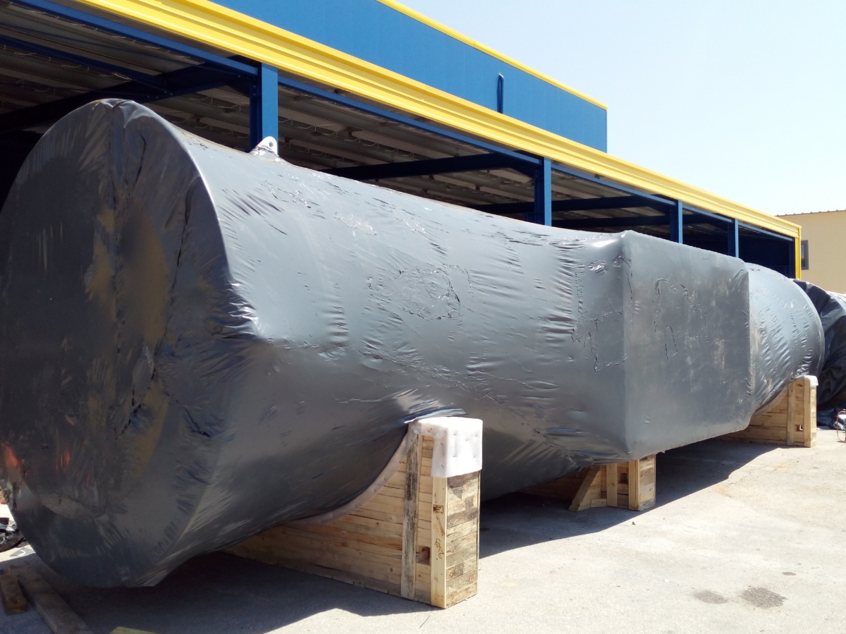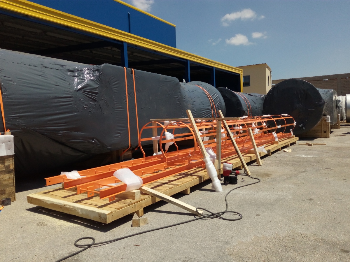 Το συγκεκριμένο έργο αφορούσε τη συσκευασία τμημάτων καμινάδων εργοστασίου παραγωγής λιπασμάτων με προορισμό το Ιράν. Αρχικά, σχεδιάστηκαν και κατασκευάστηκαν ειδικές ξύλινες βάσεις στήριξης (saddles) για την ασφαλή τοποθέτηση των καμινάδων.