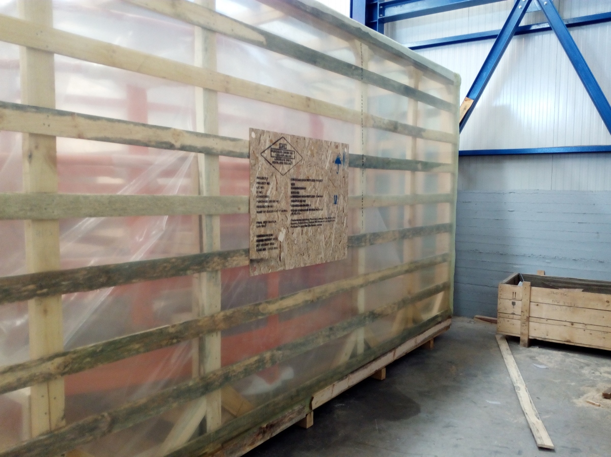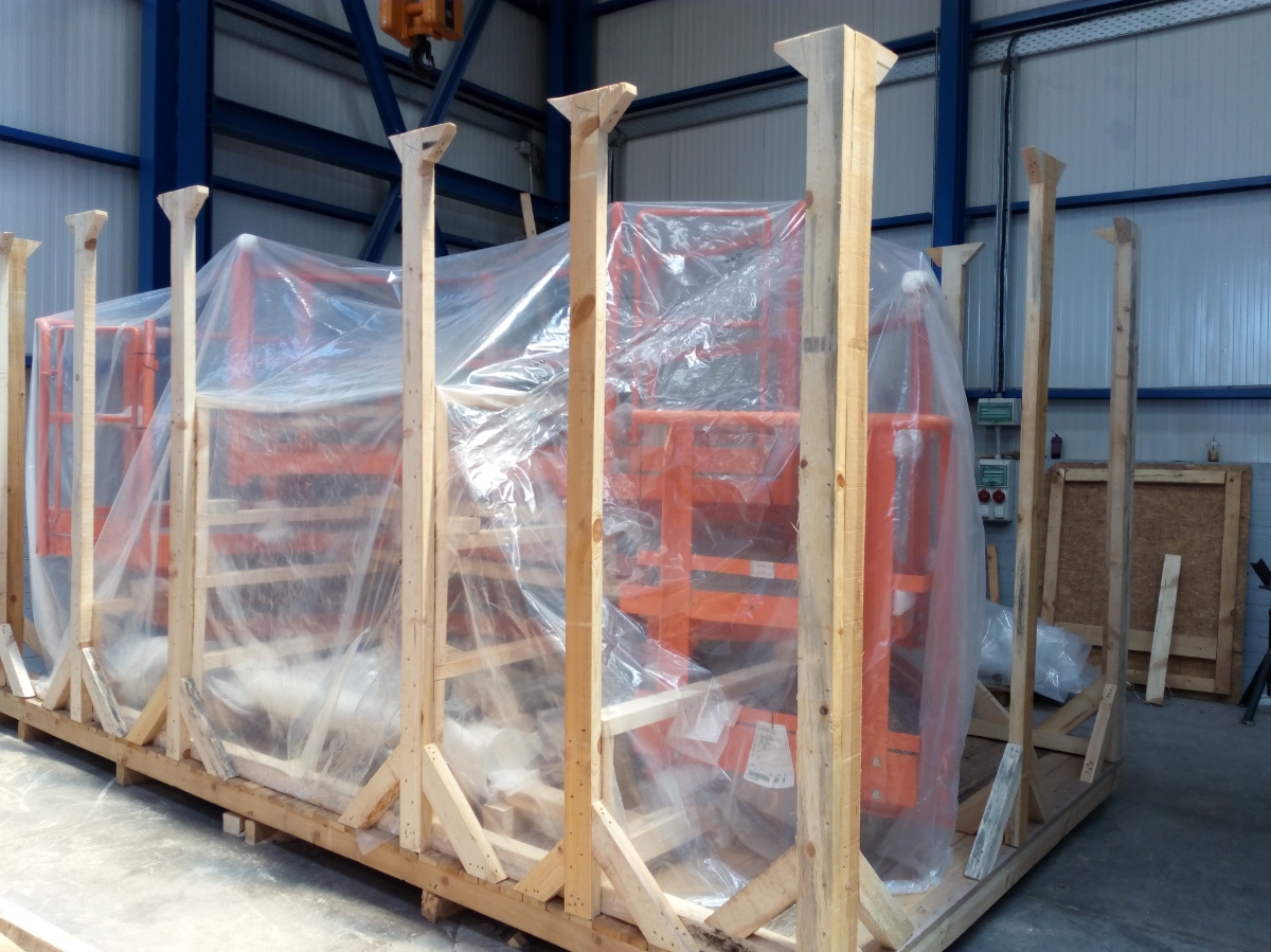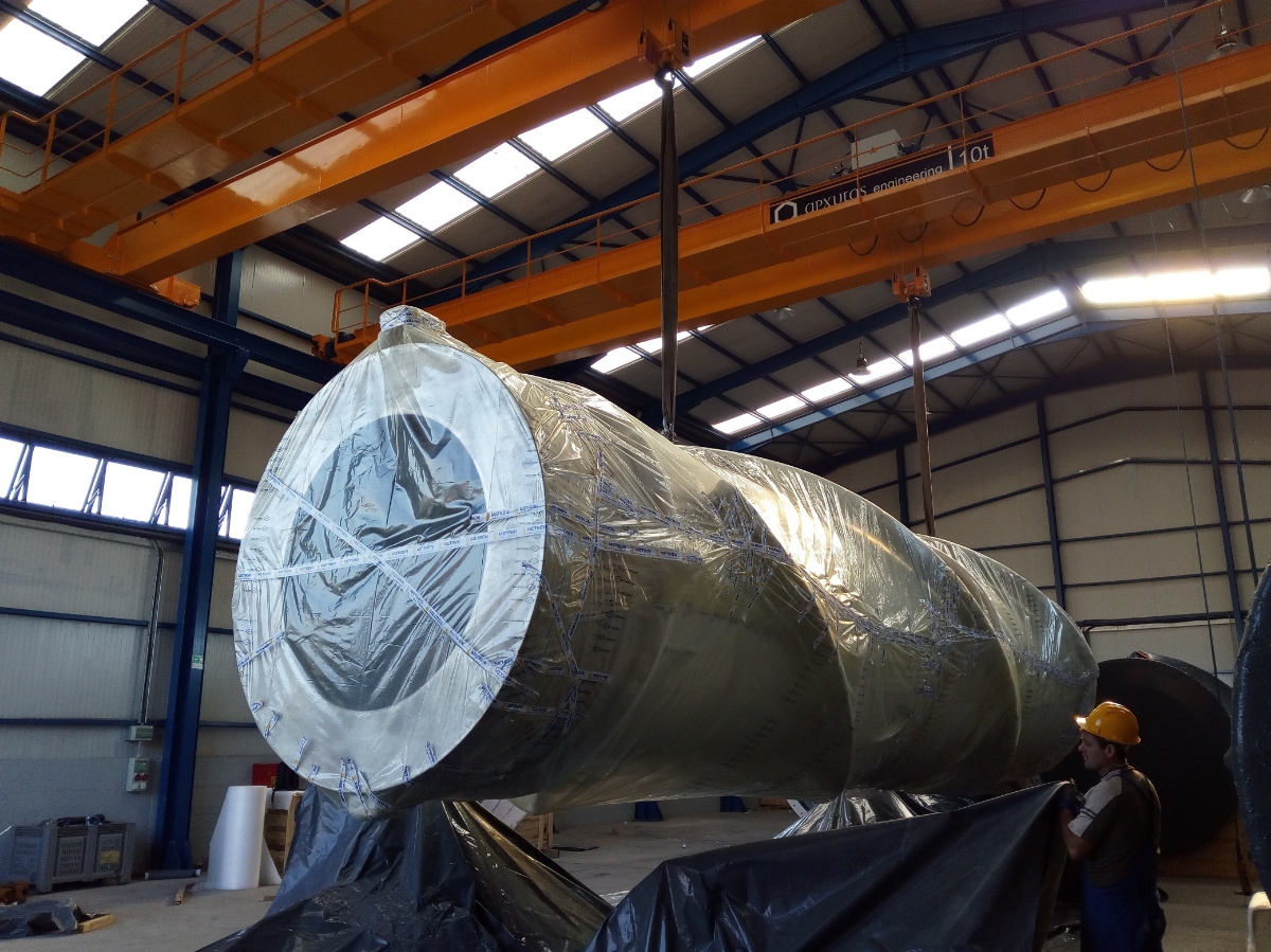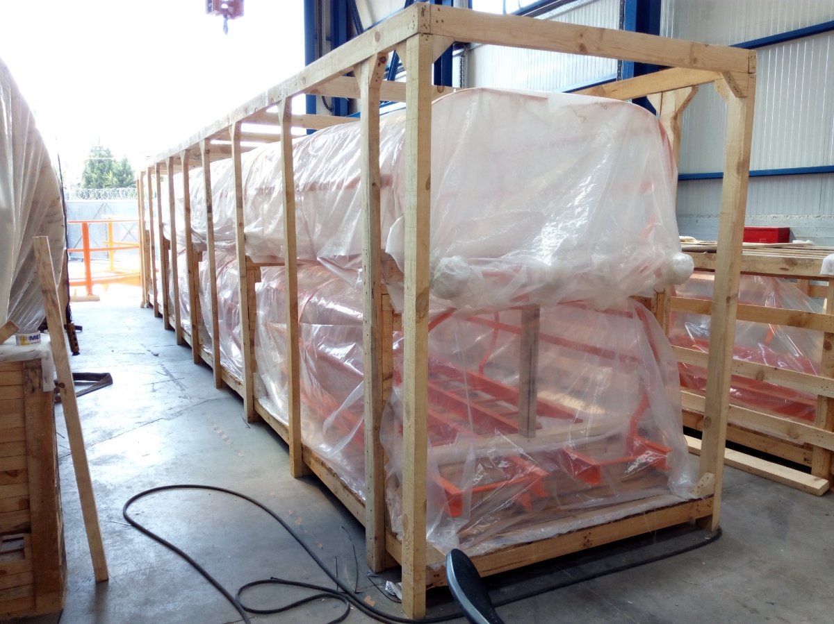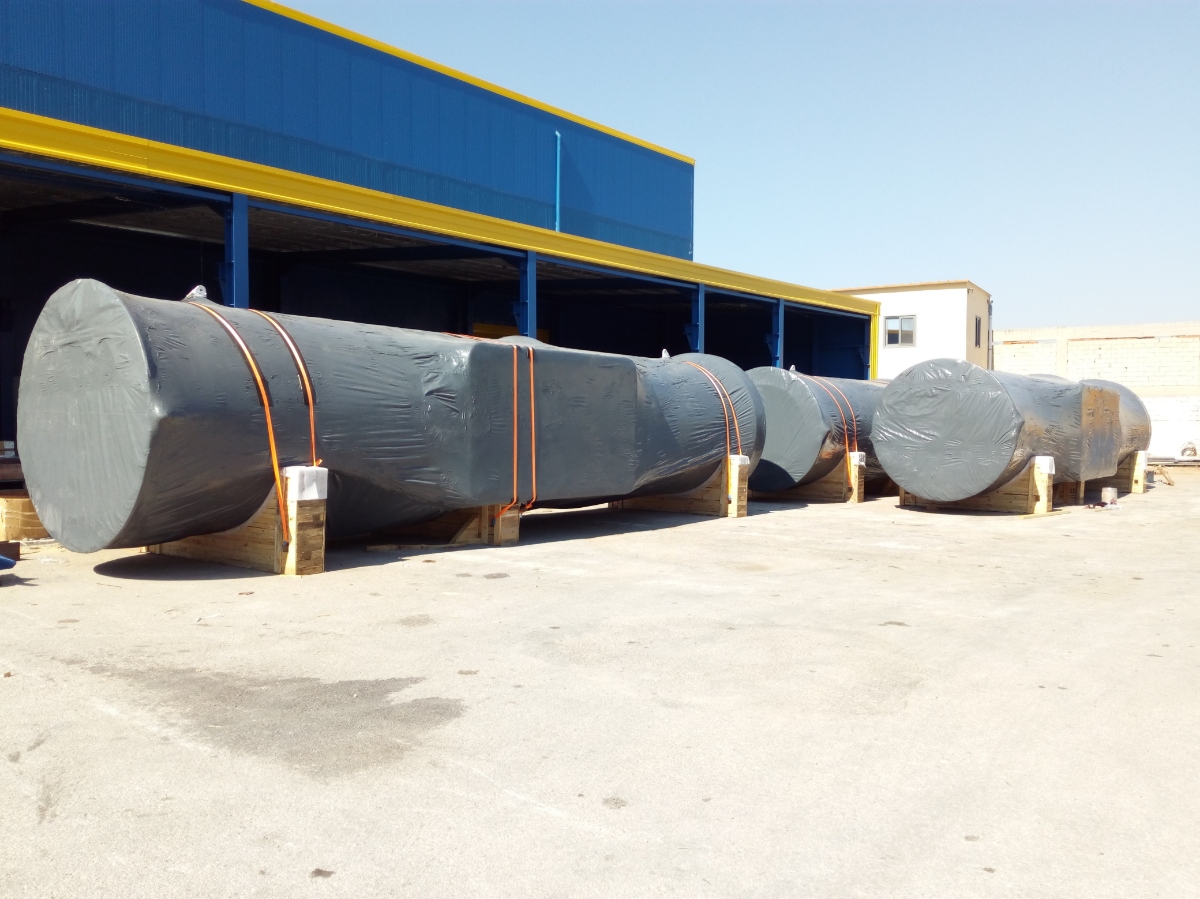 Το συγκεκριμένο έργο αφορούσε τη συσκευασία τμημάτων καμινάδων εργοστασίου παραγωγής λιπασμάτων με προορισμό το Ιράν. Αρχικά, σχεδιάστηκαν και κατασκευάστηκαν ειδικές ξύλινες βάσεις στήριξης (saddles) για την ασφαλή τοποθέτηση των καμινάδων.