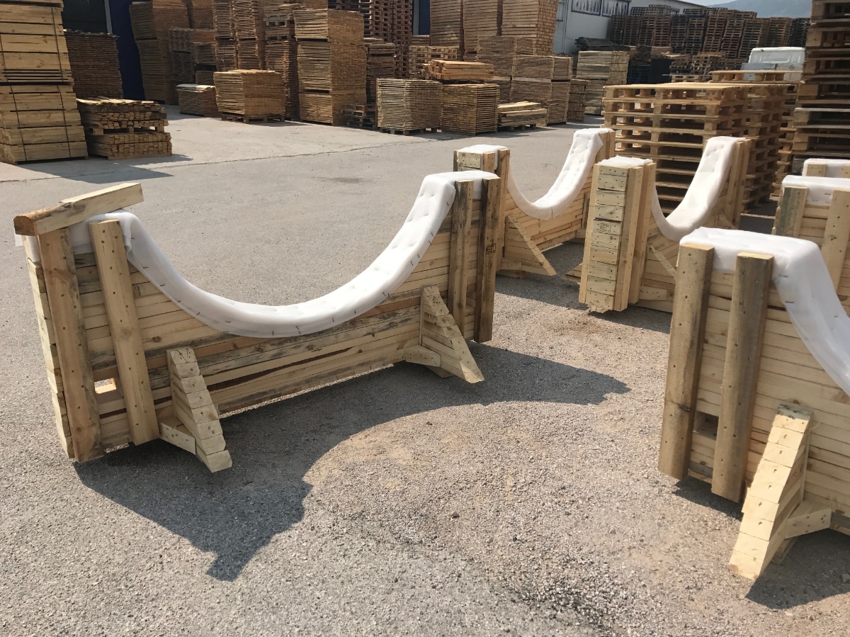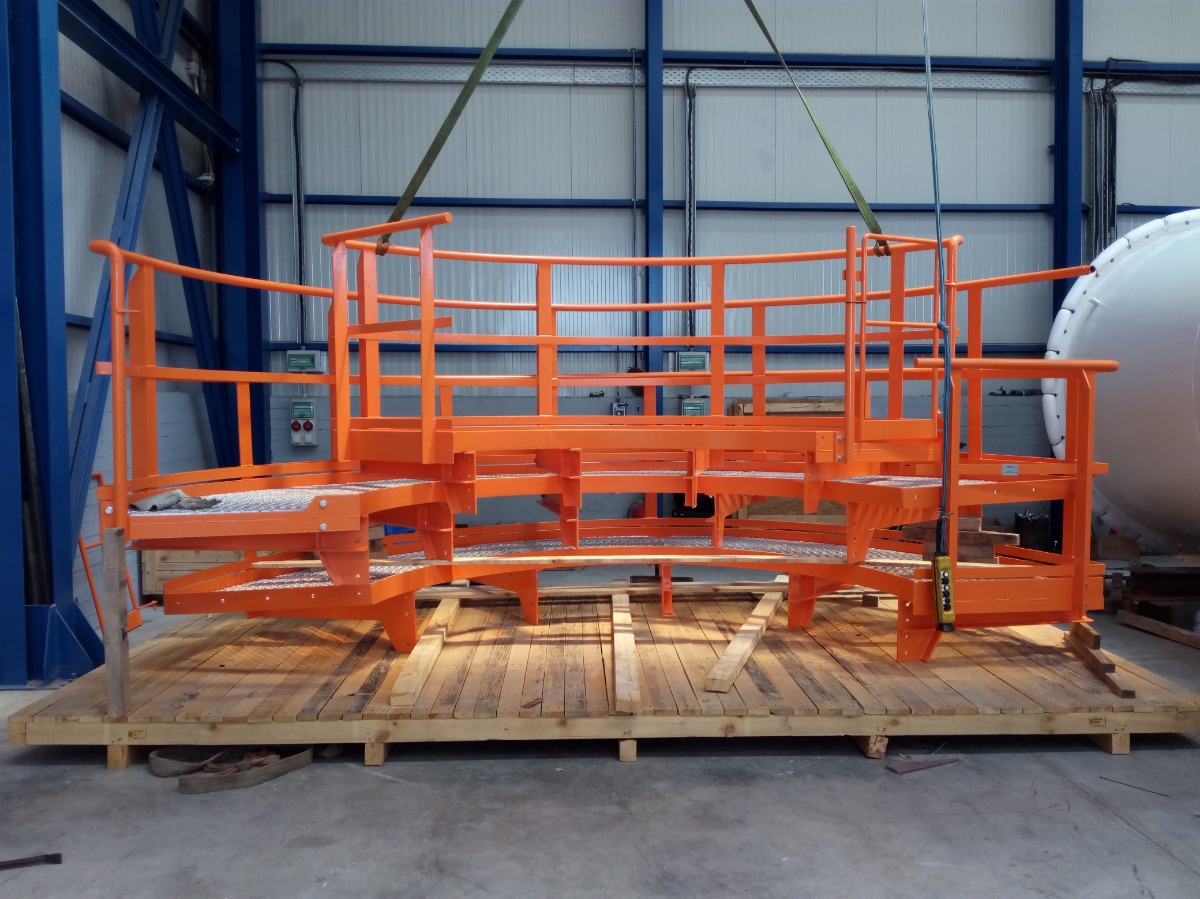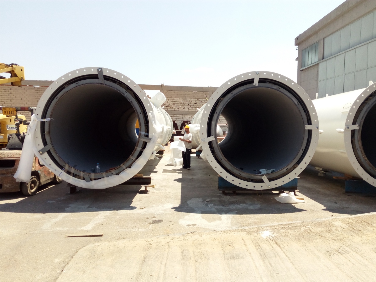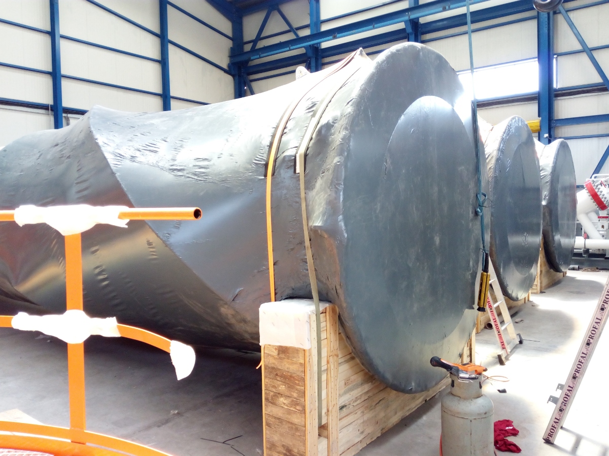 Το συγκεκριμένο έργο αφορούσε τη συσκευασία τμημάτων καμινάδων εργοστασίου παραγωγής λιπασμάτων με προορισμό το Ιράν. Αρχικά, σχεδιάστηκαν και κατασκευάστηκαν ειδικές ξύλινες βάσεις στήριξης (saddles) για την ασφαλή τοποθέτηση των καμινάδων.